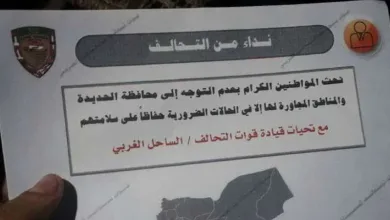 اليمن الغد/ خاص قال مراسل (اليمن الغد) في محافظة الحديدة ان طيران التحالف الحربي ألقى منشورات حذر فيها المواطنين بعدم…