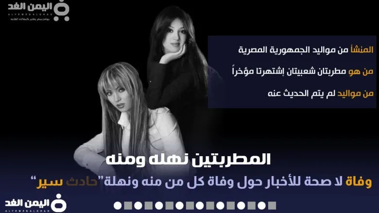 حقيقة خبر وفاة منة ونهلة من هي ويكيبيديا ضاجت بعض صفحات التواصل الإجتماعي في خبر مقتضب يتحدث حول موت المطربة نهله وكذلك المطربة منه وذلك عقب حدوث لهم حادث سير.