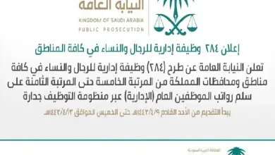 أعلنت النيابة العامة عن فتح باب التقديم لـ 80 وظيفة شاغرة في أماكن مختلفة حول المملكة للنساء والرجال الحاصلين على…